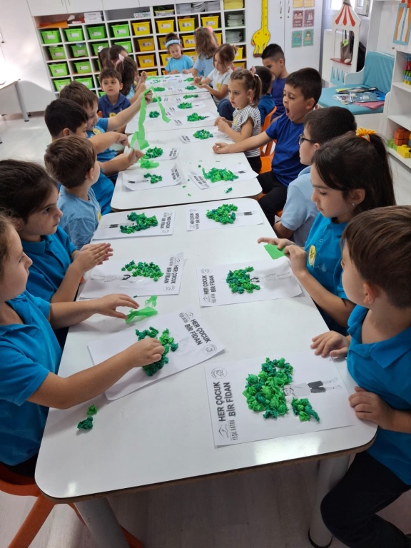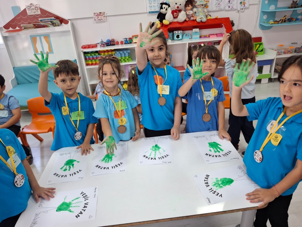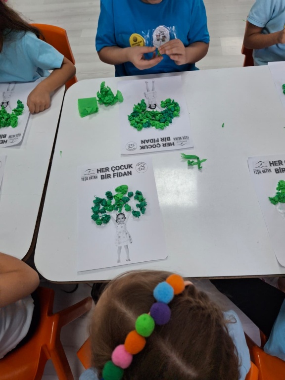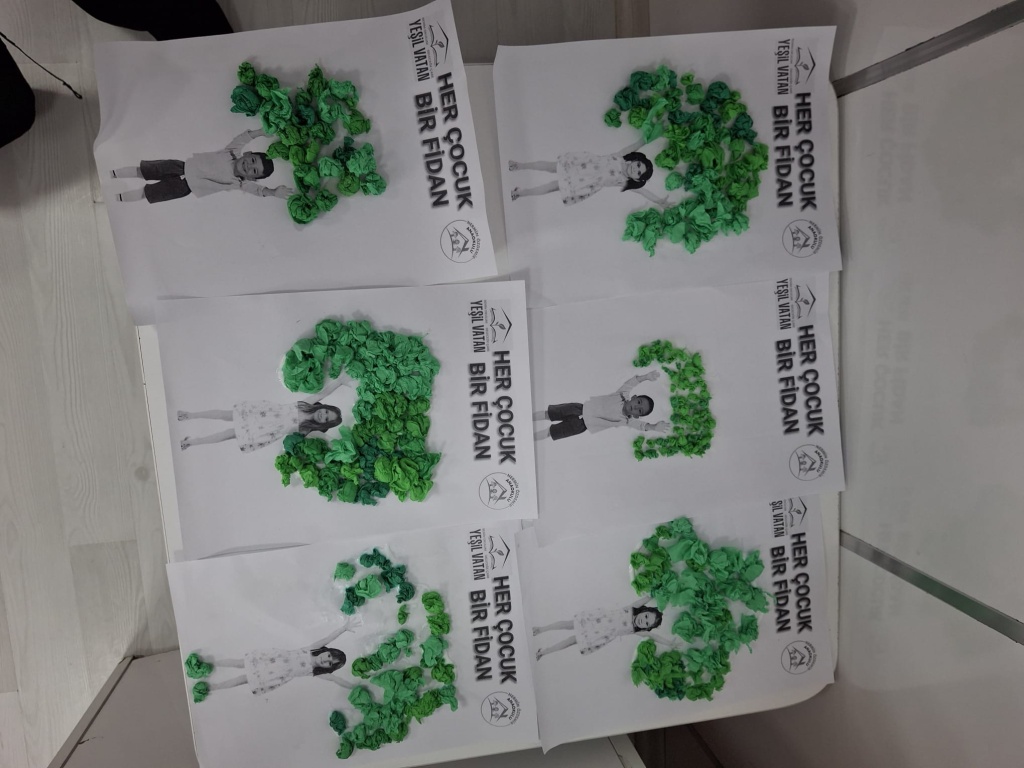 "Bakanlığımız tarafından hayata geçirilen " Yeşil Vatan Benim Okulum Geleceğe Çare Projesi" kapsamında okulumuz öğrencileri Eylül ayı boyunca Ağaçlar Bitkiler Neye İhtiyaç Duyar ?keşfettiler,okul bahçemizdeki ağaçları tanıdılar,Tohum Fidan Ağaç oyunu oynandılar,aile katılımıyla evdeki çiçekleri sulama görevini üstlenerek sorumluluk bilinci kazanmaları, canlılara karşı duyarlılık geliştirmeleri ve doğayı sevme alışkanlığı edinmeleri sağlandı,Her Çocuk Bir Fidan ve Yeşil Vatan afiş sanat çalışmalarını gerçekleştirdiler."